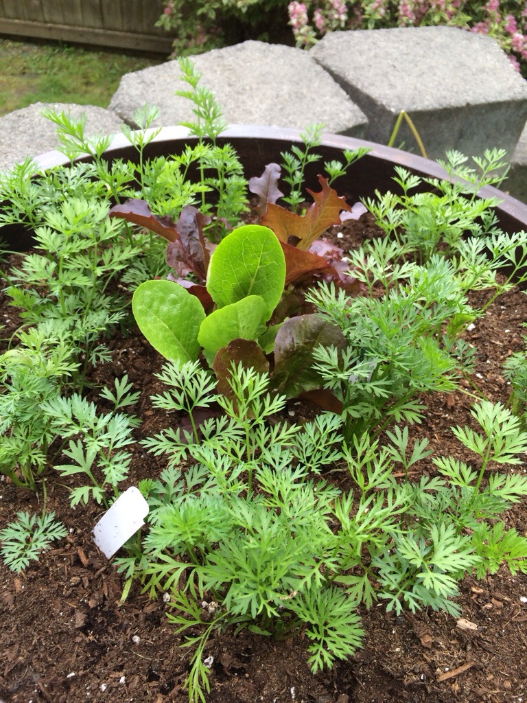 Carrots need to be thinned early and aggressively. I didn’t do this early enough and my carrots grew twisted around each other. The few carrots that did manage to grow without being completely misshapen, didn’t taste very good. I have been most disappointed with my carrots.